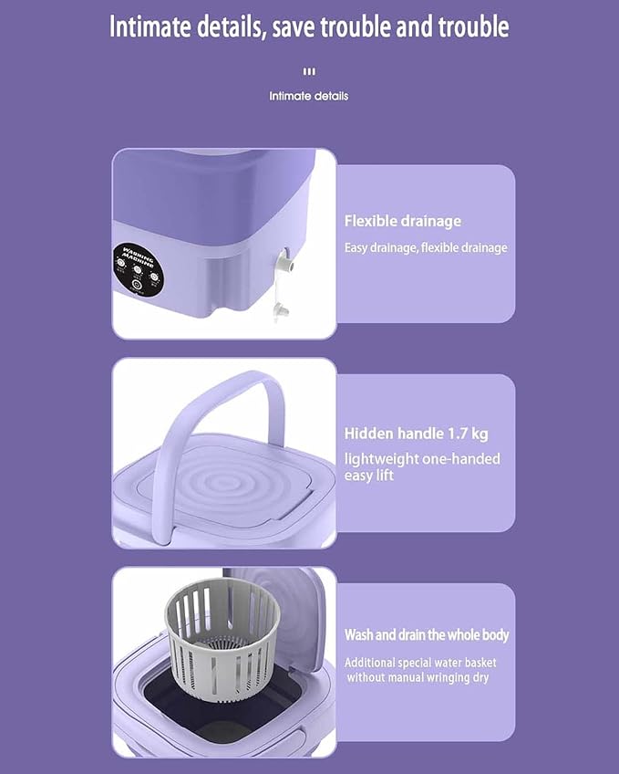 Experience the convenience of laundry anywhere with the BETRAM Portable Washing Machine. Compact yet powerful, this mini washer is designed to fit perfectly in small spaces such as apartments, dorm rooms, or even while traveling.